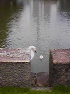 皇居から出ようとした時、堀のところに白鳥が2羽。つがいと思われ。